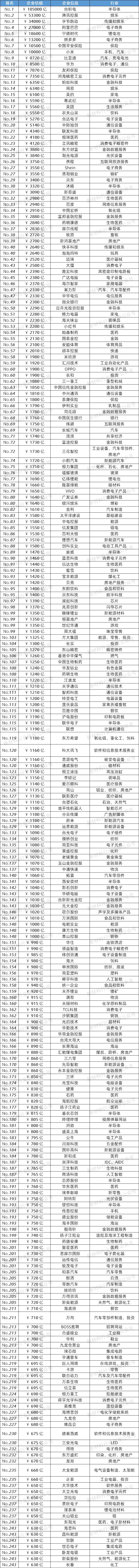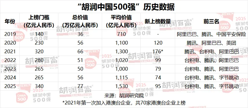 2026年2月5日,《2025胡润中国500强》发布。《2025胡润中国500强》列出了中国500强非国有企业,按照企业价值进行排名。上市公司市值按照2025年11月14日的收盘价计算,非上市公司估值参考同行业上市公司或根据最新一轮融资情况进行估算。这是胡润研究院连续第七次发布“胡润中国500强”。