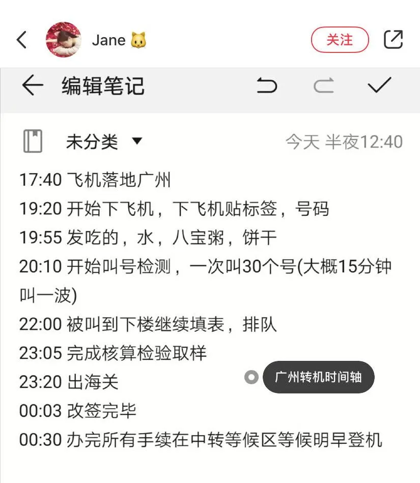 网友Jane分享了她在广州转机的时间表,从落地到办完所有手续等待登机,足足花了7个小时。