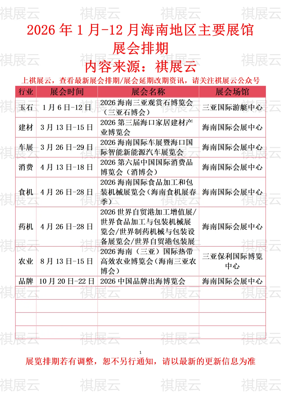 会展资讯丨2026年海南地区主要展馆展会排期预告