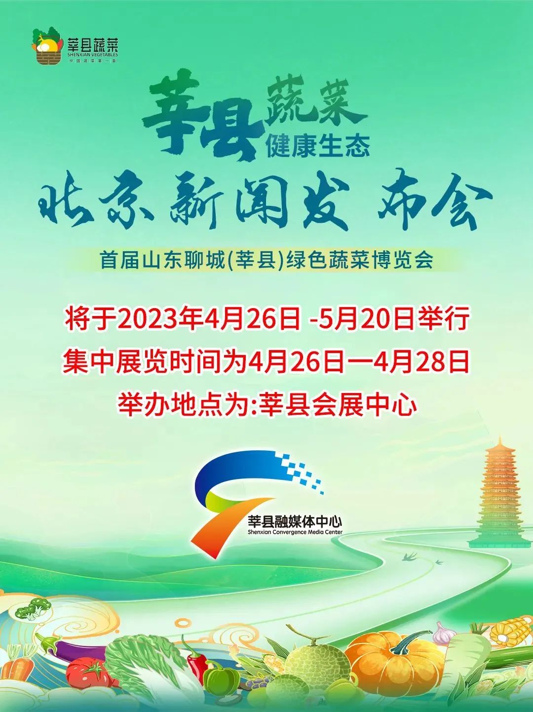 由山东省农业农村厅和聊城市人民政府主办,莘县人民政府承办的首届山东聊城(莘县)绿色蔬菜博览会,于2023年4月26日—5月20日举行,集中展览时间为4月26日—4月28日,举办地点为莘县会展中心。