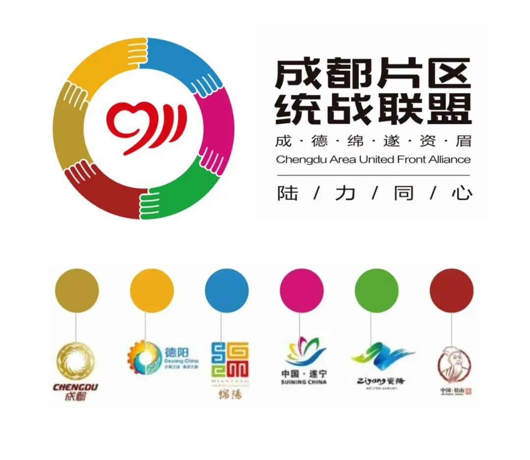 原力为统战联盟设计标识,不同色彩的6只臂膀相互依存,表达不同的地级市特征;相互携手,形成循环的圆形,表达六市相融,共同推进统战工作不断向前、生生不息;围绕中间的“同心四川”,表达统战联盟团结一心,统一目标,共同达成。