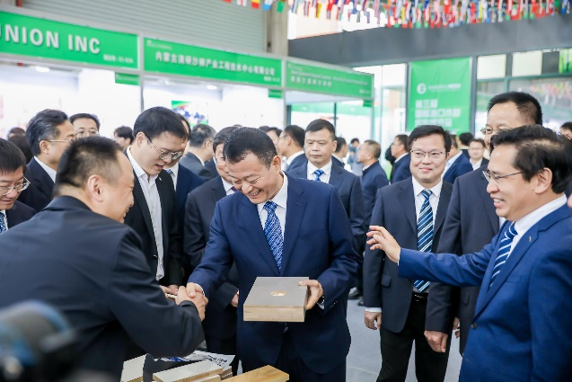 最后各位领导、嘉宾、观展代表移步至主展馆参观巡展,博览会执行主任戚士龙引导并介绍本次木博会主要情况。