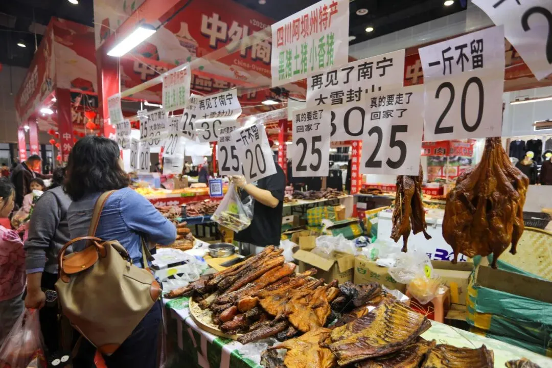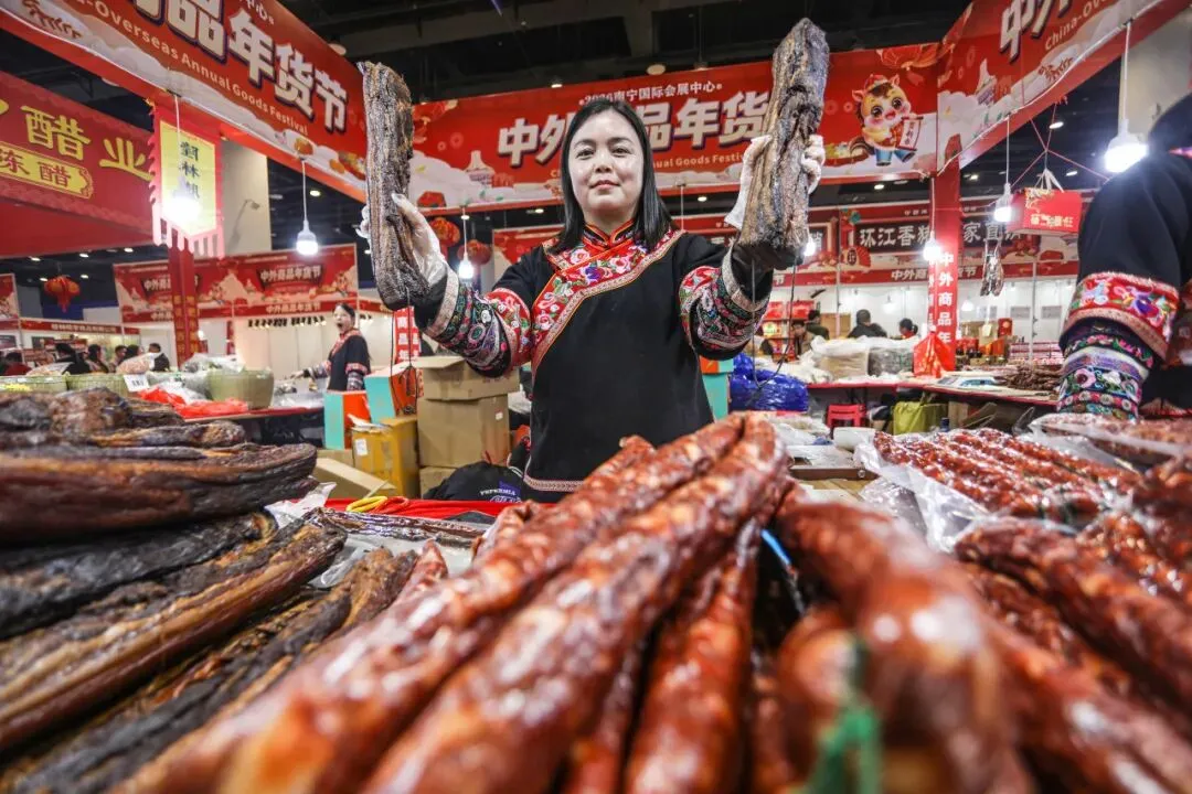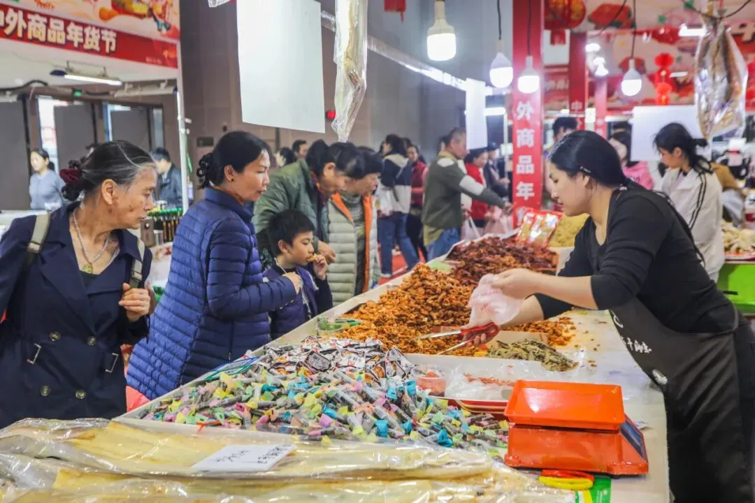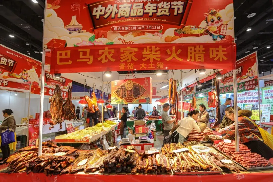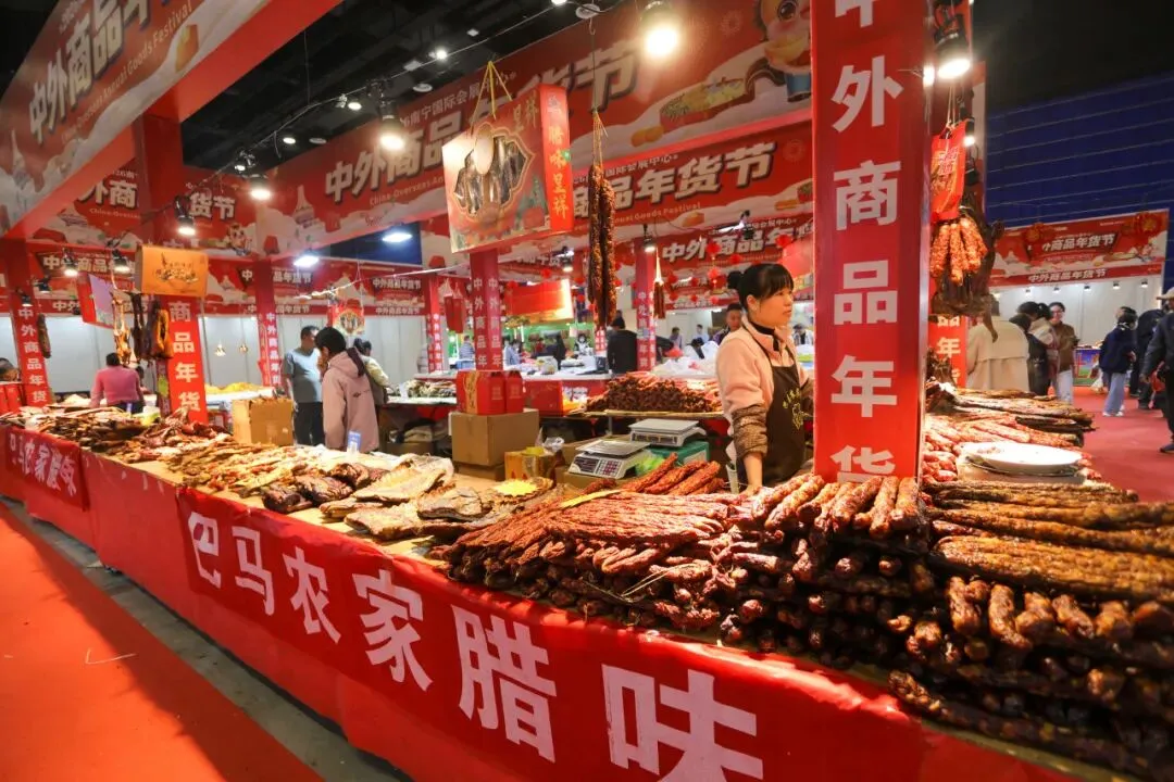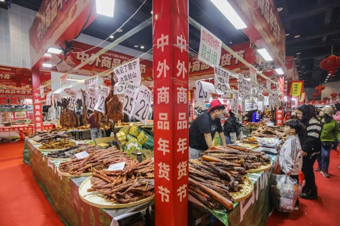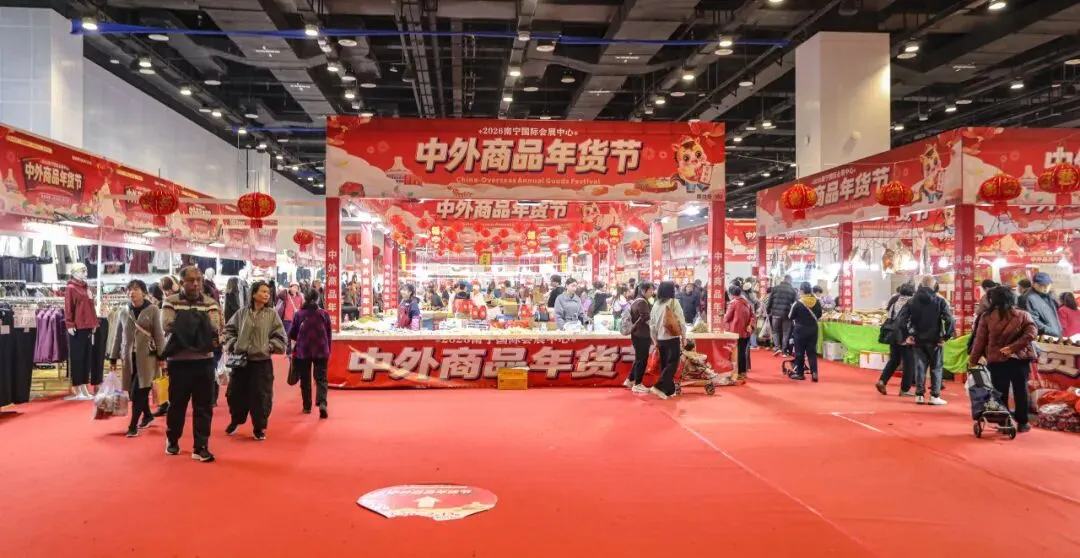 2 月 13 日,2026 南宁国际会展中心中外商品年货节迎来最后一天。现场年味浓郁、人气火爆,各类年货迎来清仓特惠,价格格外实惠。市民们纷纷抓住最后的机会前来采购,腊肉、腊肠、腊鸭香气扑鼻,海鱼干、各式糖饼琳琅满目,让人目不暇接。大家精心挑选、满载而归,处处都是热闹喜庆的氛围。这场年货盛会不仅方便了市民置办年货,更让大家在浓浓的烟火气里,提前感受到了团圆幸福的年味儿。