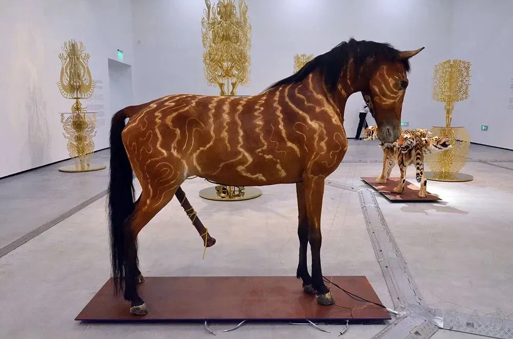 2016年11月4日,北京民生现代美术馆 “征兆:邬建安新作展”开展,展品为动物剥制标本手法制作的神话生物 (图片来源:中央美术学院艺术资讯网)