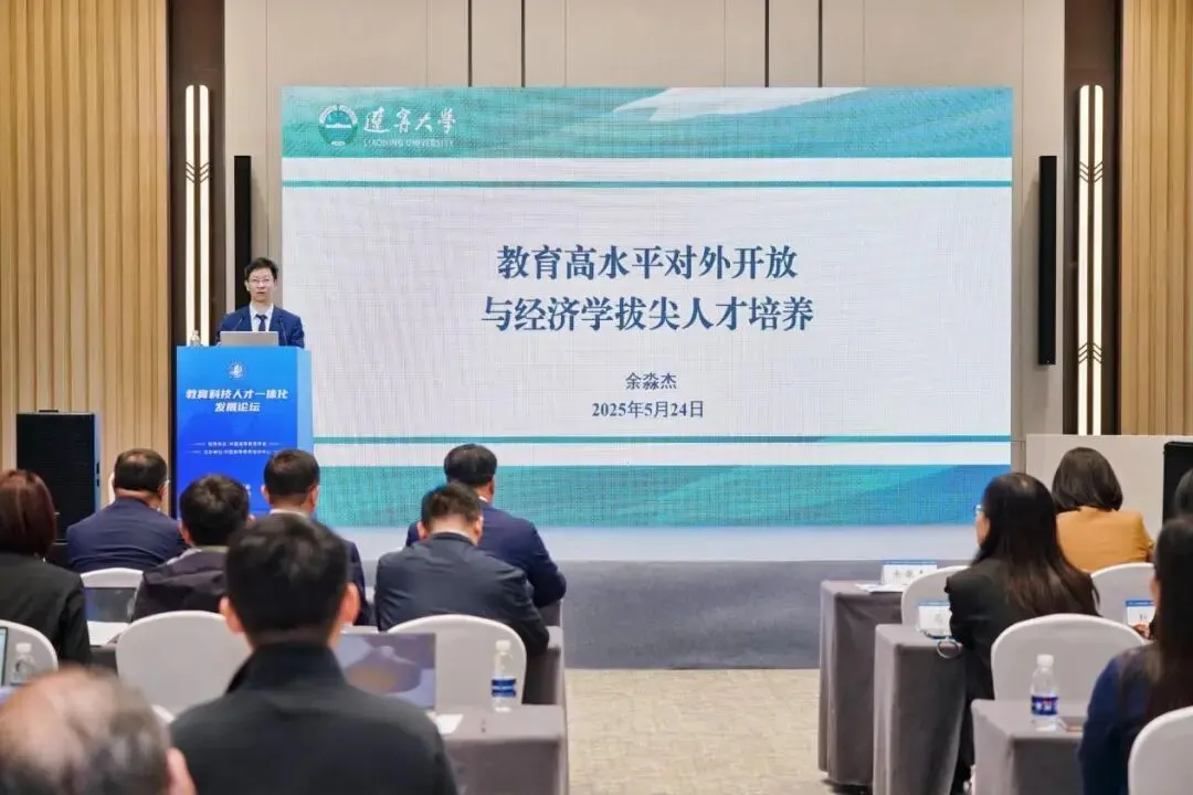在主旨报告环节,余淼杰以《教育高水平对外开放与经济学拔尖人才培养》为题作主旨发言。他以教育的政治属性、人民属性和战略属性,阐释了教育高水平对外开放的深刻内涵,分享了辽宁大学在扎实推进中外合作办学、国际交流合作、孔子学院建设等教育对外开放方面所取得的成绩,并从课程建设、教材建设、师资队伍建设、学术氛围营造以及深度参与教育部“101计划”等方面,介绍了学校持续提升人才培养质量的工作经验和工作成效。