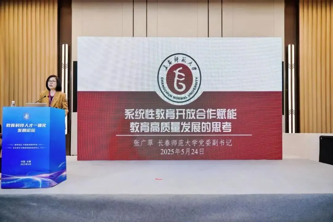 张广翠以《系统性教育开放合作赋能教育高质量发展的思考》为题作主旨发言。她围绕教育强国背景下吉林大学和长春师范大学的实践,解读了教育对外开放的新使命、新任务、新机制。