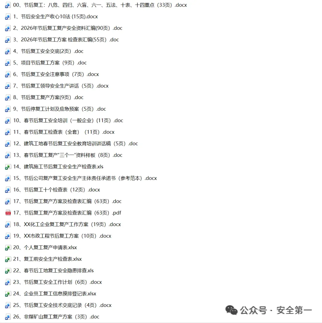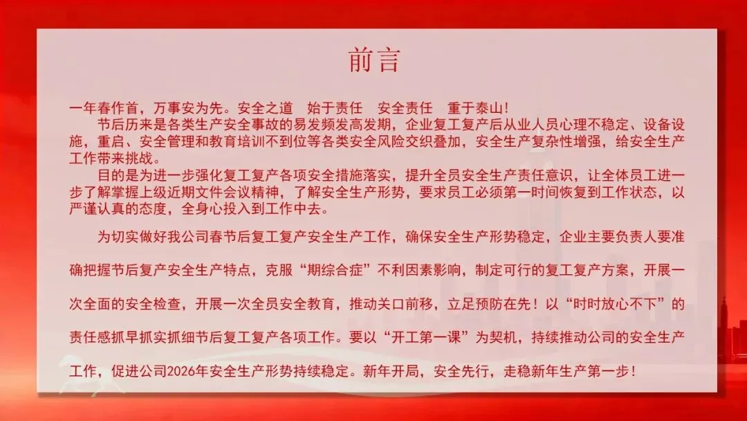 小安整理60篇2026年春节节后复工复产安全精品PPT及文档!陆续上传,供大家参考借鉴!减少您大费周折找资料的时间!