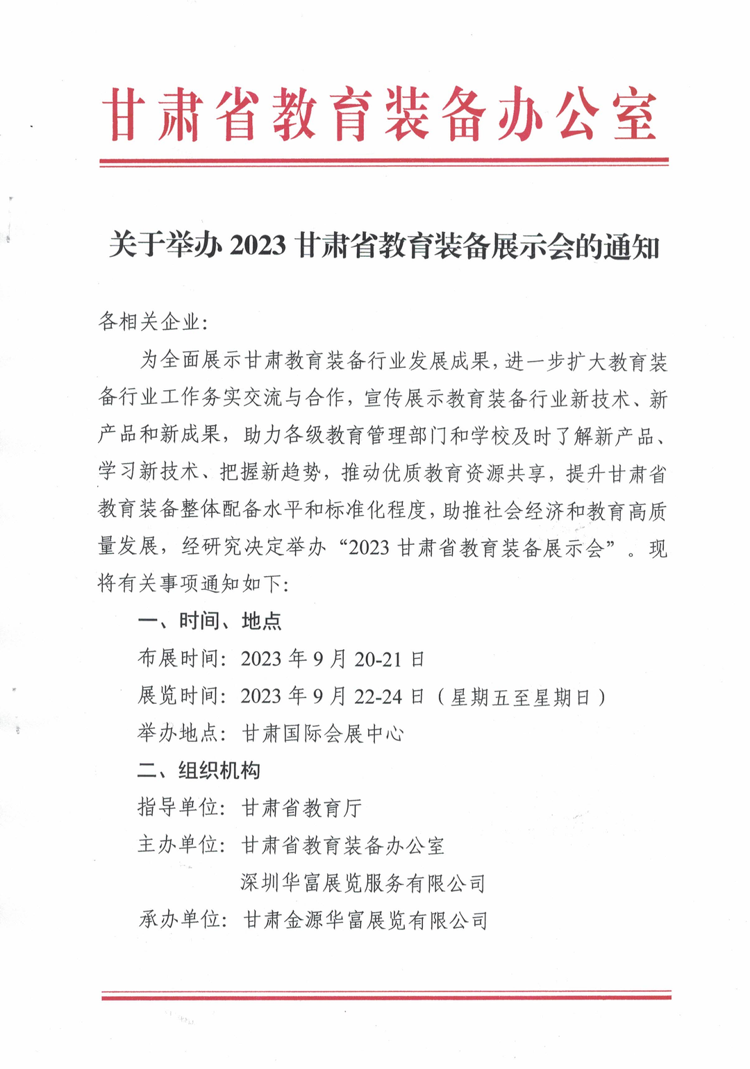 2023甘肃省教育装备展示会由甘肃省教育厅指导,甘肃省教育装备办公室和深圳华富展览服务有限公司联合主办,由甘肃金源华富展览有限公司独家承办,通过教育主管部门组织、行业宣传、精准邀约,预计超30000名高质量专业观众到会参观,为企业带来高端专业用户,实现零距离产业链互动,是企业展示新产品、新技术,进行高效品牌推广的高效渠道。