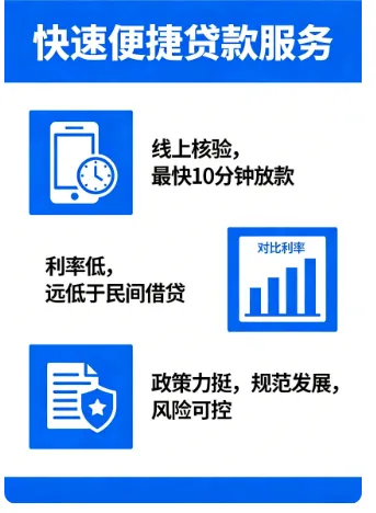 • 线上核验,最快10分钟放款