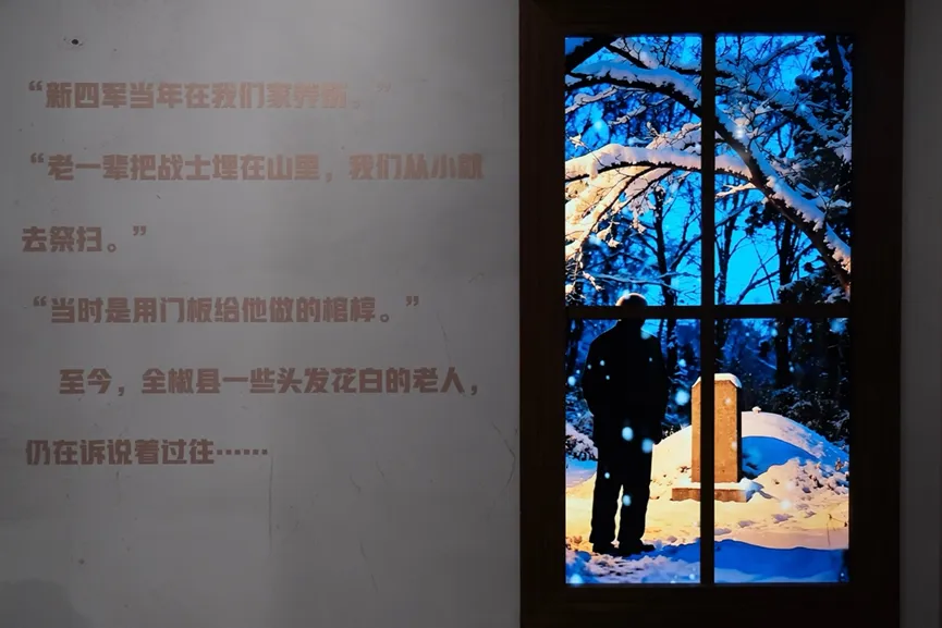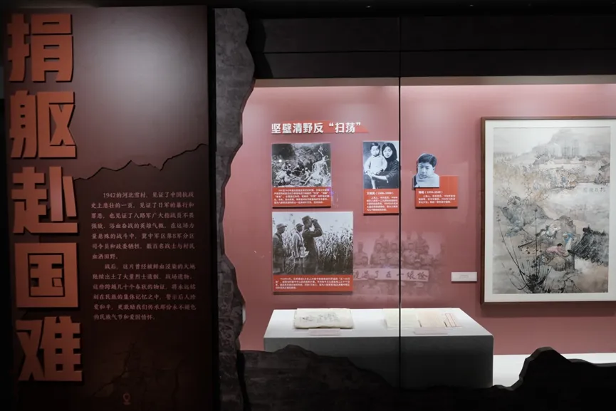 以小切口讲述大主题,在高昂的基调中加入温情的段落,弱化了宏大叙事口吻给观众带来的压迫感(吴心怡,2023)。该展览选择敌后抗战、战地医疗、守墓寻亲这样的小切口,围绕发生在山西方山、河北肃宁、安徽全椒的三个抗战故事展开叙事,展现出普通人在抗战中的奉献与牺牲。