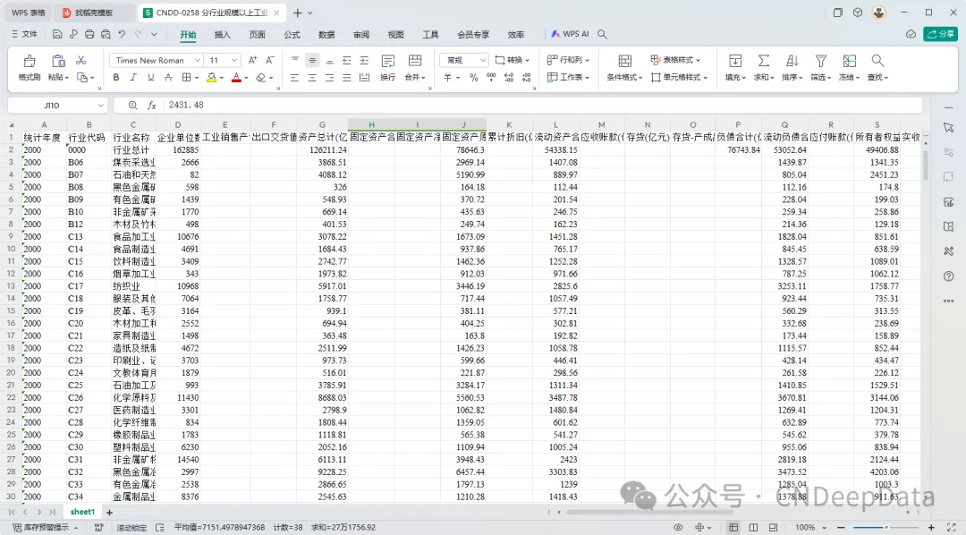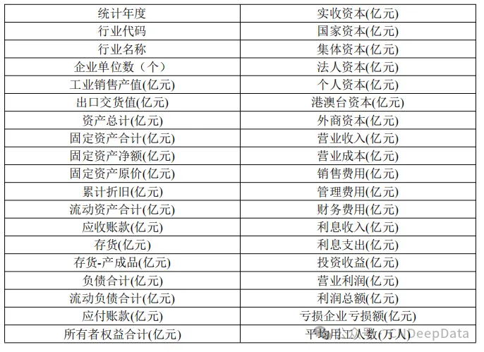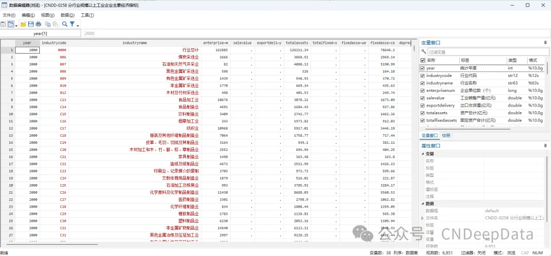 ▪ 数据说明:CNDD分行业规模以上工业企业主要经济指标包含统计年度、实收资本(亿元)、行业代码、国家资本(亿元)、行业名称、集体资本(亿元)、企业单位数(个)、法人资本(亿元)、工业销售产值(亿元)、个人资本(亿元)、出口交货值(亿元)、港澳台资本(亿元)、资产总计(亿元)、外商资本(亿元)、固定资产合计(亿元) 营业收入(亿元)、固定资产净额(亿元)、营业成本(亿元)、固定资产原价(亿元)、销售费用(亿元)、累计折旧(亿元)、管理费用(亿元)、流动资产合计(亿元)等变量。文件提供.xlsx和.dta两种格式,可使用stata或excel打开。