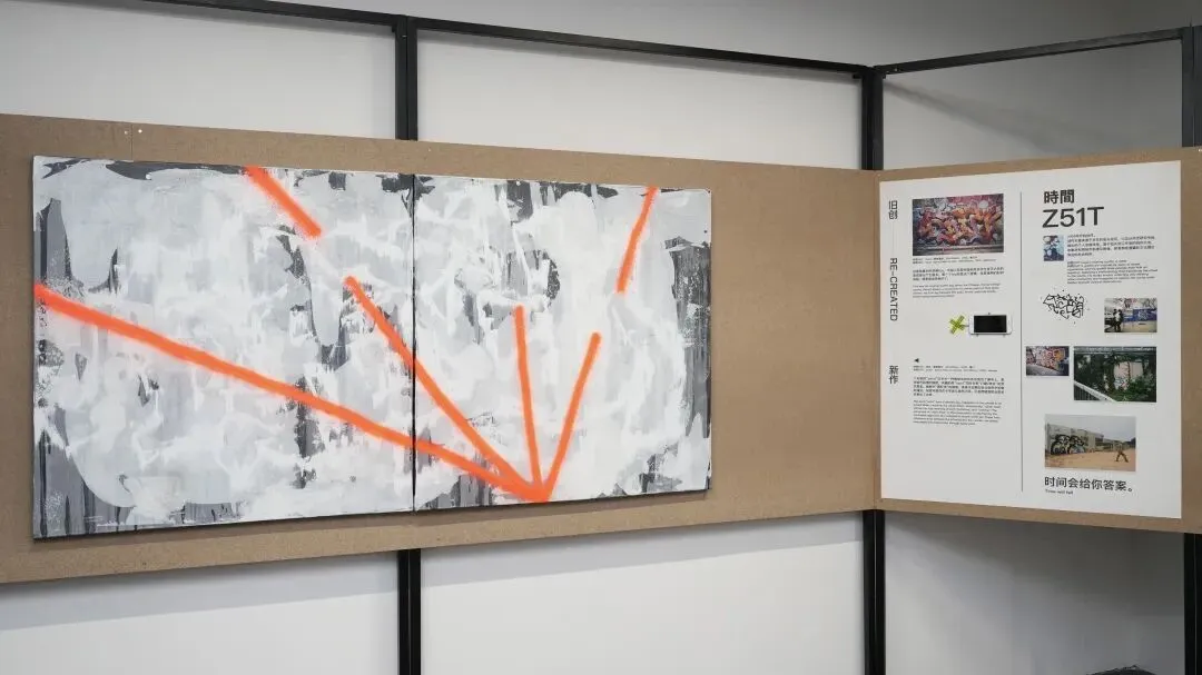 時間Z51T:我的创作风格从写英文的Funky Style转向中文涂鸦是一次转折。现在从中文涂鸦走向更抽象的尝试,是又一次转折。前者是我在异国他乡对自我身份认同的找寻;后者则是这几年街头创作带来的改变——我一直觉得涂鸦应该从街头生长出来,在城市中行走、与空间交流,能让作品和认知获得新的改变。