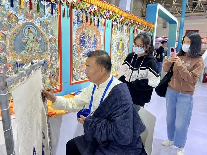 三是现场活态展演。邀请了堆绣、唐卡、皮艺、掐丝画等非物质文化遗产项目代表性传承人、工艺美术大师进行现场技能技艺展演,通过非遗技艺活态展演直观感受传统文化传承之美,推进非物质文化遗产资源在文化产业中的创造性转化和创新性发展。