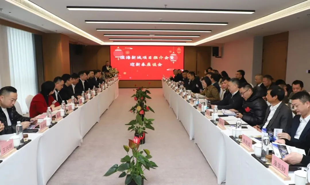 2月13日上午,温岭滨海新城举行项目推介会暨新春座谈会,50多名返乡工商界人士与政府领导、松门镇商会的企业家一起欢聚一堂,续乡情乡缘,看新城气象,谋未来新篇。