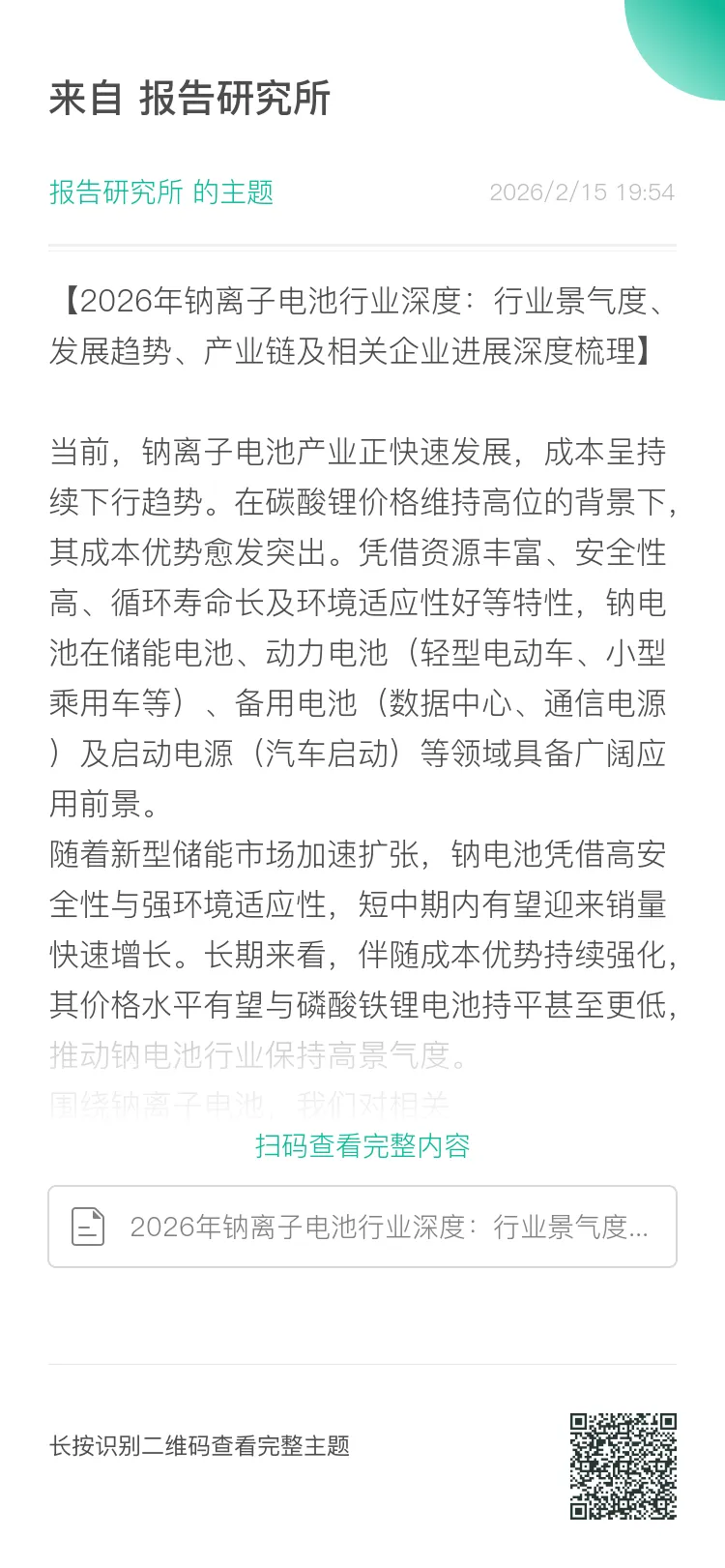 钠电池行业的扩产潮已经到来。伴随着新型储能的爆发式发展,钠电池因高安全性、长寿命及环境适应性强的特征,将在新型储能等领域获得越来越多的应用,短中期看,钠电池行业将面临销量大幅提升的利好;长期而言,随着扩产和研发投入的增加,钠电池的价格优势将得到进一步强化,有望与磷酸铁锂电池持平甚至更低,发挥出针对磷酸铁锂储能电池的替代机制,使钠电池行业景气度长期维持高位。