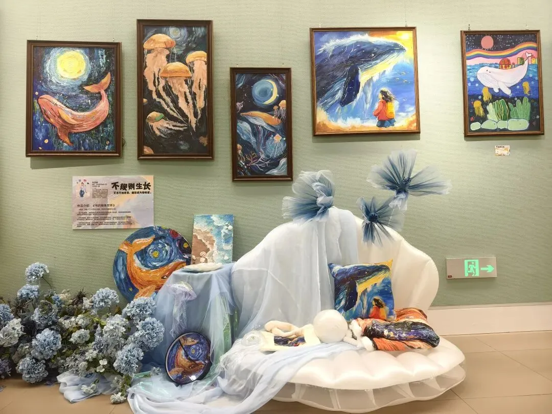 以作品为蓝本制作的丝巾、手提包、笔记本、抱枕等文创品,将孩子们的画作融入日常。这些精致可爱的物件,既延伸了艺术的边界,又让艺术之美可触、可感。