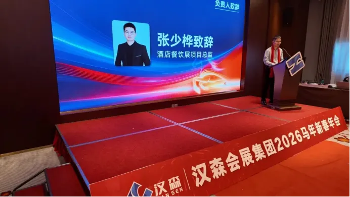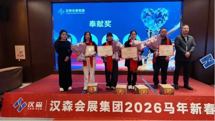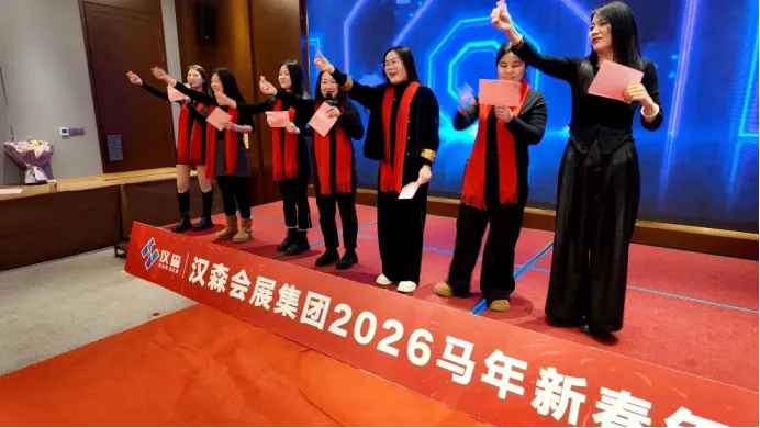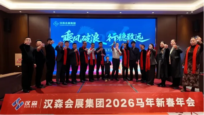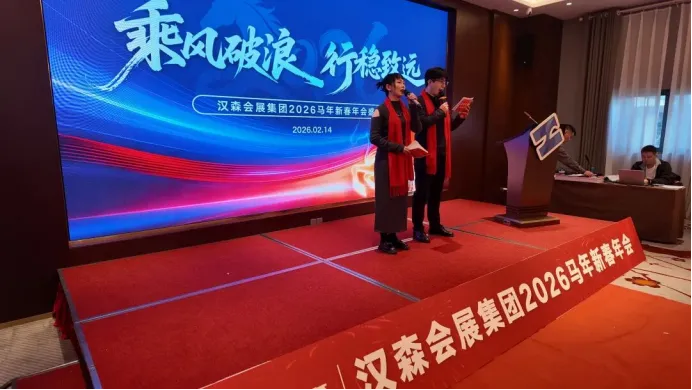 2月14日,汉森会展集团“乘风破浪·行稳致远”2026年新春年会盛典隆重举行。公司全体员工欢聚一堂,共同回顾过去一年的奋斗历程,展望新一年的美好蓝图。
