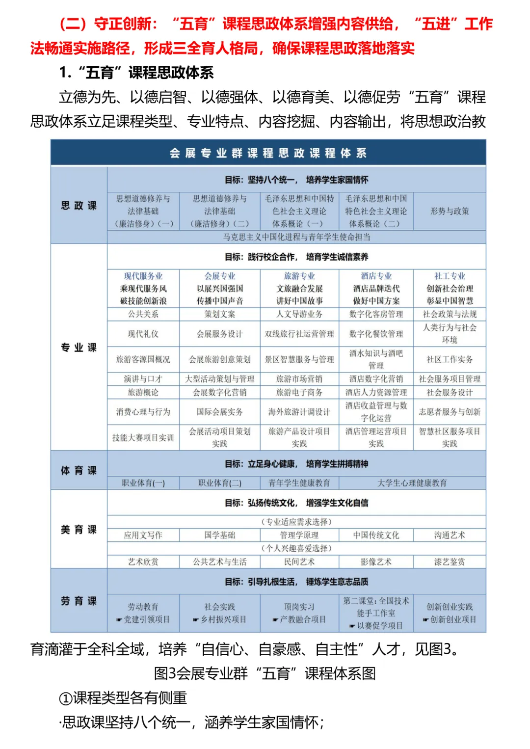 (二)守正创新:“五育”课程思政体系增强内容供给,“五进”工作法畅通实施路径,形成三全育人格局,确保课程思政落地落实