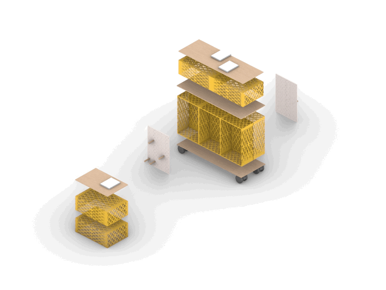 回溯周转箱的生平,或许它始终以幕后工作人员的角色辗转于各类物品的传输中。现在我们选择逆流而上,把暗处的周转箱转移到聚光灯下,使其以作品安放者的角色出现。