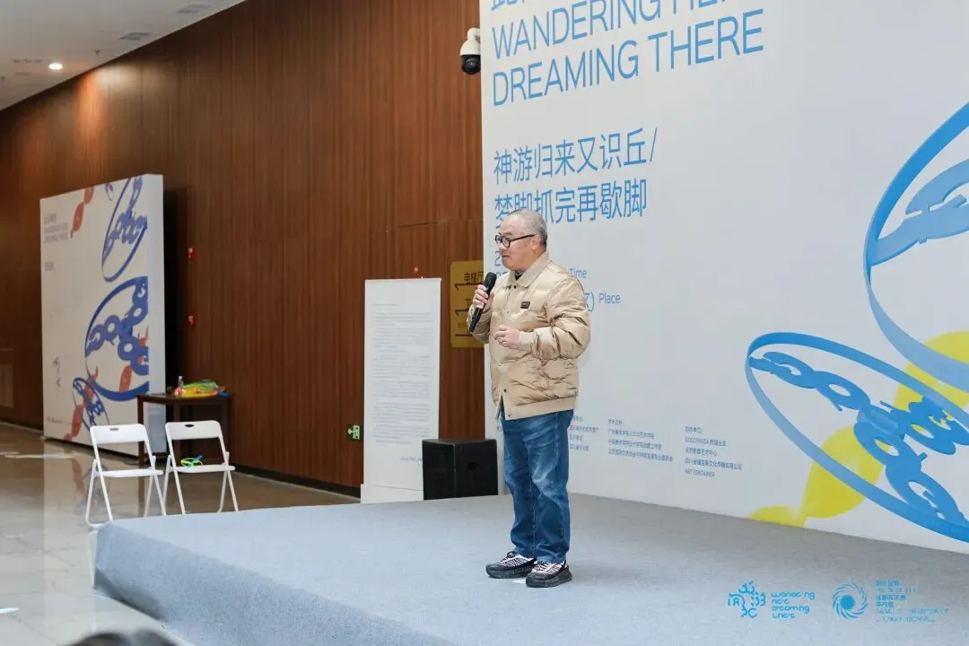 在全场热烈的掌声中,崔宏岳副处长隆重宣布:“‘此间神游——神游归来又识丘/梦脚抓完再歇脚’展览,正式开幕!”随后,到场嘉宾共同拨动交互装置并放飞手中的“飞天仙子”,象征着艺术精神在人民群众生活中的升腾与共鸣。