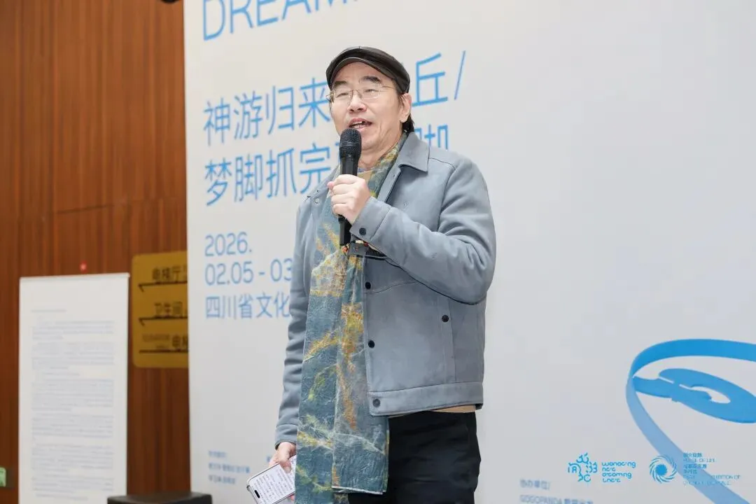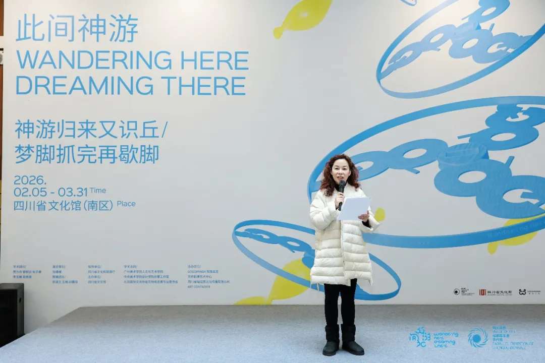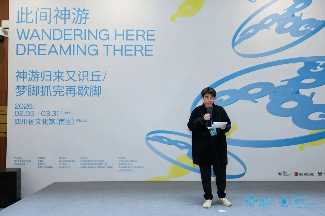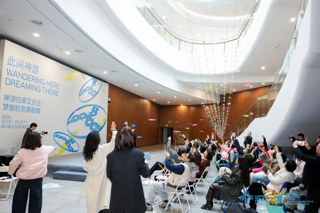 2026年2月12日,由四川省文化和旅游厅指导、四川省文化馆主办的“此间神游——神游归来又识丘/梦脚抓完再歇脚”(Wandering Here, Dreaming There)展览正式启幕。作为“烟火指数·成都双年展”的重要平行展,本次展览扎根巴蜀文化语境,从“神”字的多重语义出发,以“神游”为核心意象,既呈现了艺术的广博创造,也捕捉了市井民间的诙谐鲜活,实现了当代艺术语境与本土生活温度的深度链接。