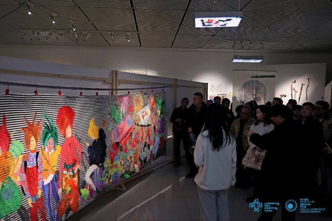 四川省文化和旅游厅公共服务处副处长崔宏岳,四川省文化馆馆长李琳,四川省艺术研究院副院长张垚,四川音乐学院艺术学理论与管理学院副院长、教授廖勇,四川省文化和旅游厅联合党委梁继乾,本次展览学术顾问、中央美术学院设计学院教授李玉峰,本次展览学术顾问、云南大学艺术与设计学院教授管郁达,以及参展艺术家袁蓉荪、何利平、张晓、夏海瑜、阿土培等参加开幕式。现场嘉宾云集,共同见证了这场旨在推动群众文化与当代艺术深度融合的“群众共游记”。