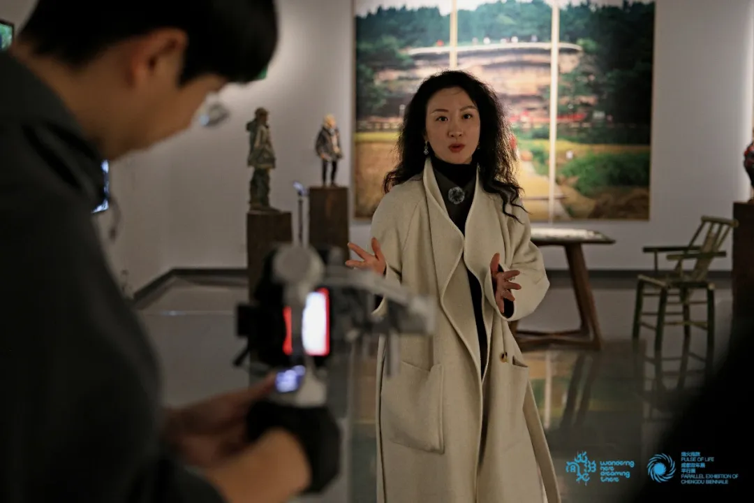 李琳馆长在致辞中指出,文化的意义不止于表达,更在于连接:连接传统与创新、本土与世界、个人经验与群体精神。四川省文化馆长期致力于全省公共文化服务,愿意成为思想的发生地,成为广大公众重新理解“艺术为何、生活何在、精神何向”的窗口。希望观众在这场展览中,感受四川人幽默背后的思辨温度,在平凡的日常中发现非凡的生命力,从“形”中悟“神”,在“神游”中悟“识”,在当下的生活与文化中找到新的发现与力量。