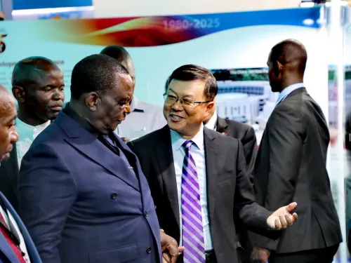 2025年4月23日至25日,驻津巴布韦大使周鼎出席第65届津巴布韦国际贸易博览会及中国国家展有关活动。图源:外交部