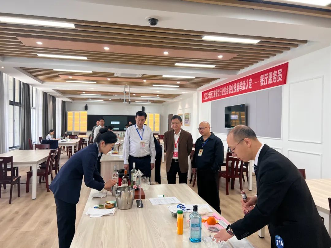 为认真贯彻习近平总书记关于人才培养的重要指示精神,落实国家人社部《关于进一步加强高技能人才与专业技术人才职业发展贯通的实施意见》和省委省政府关于加强和改进新时代人才工作的要求,浙江省餐饮行业协会2022年度获批成为在全省餐饮业开展职业技能等级认定工作,下半年开始,组织相关专业的专家学者组成的考评组,相继在完成餐厅服务员、中式烹调师、餐厅服务员考评员的认定后,又于2023年4月16日在杭州市中策职业学校(康桥校区)顺利完成了今年首批餐厅服务员工种一级(高级技师)、二级(技师)职业技能等级认定工作,共认定考生89人。