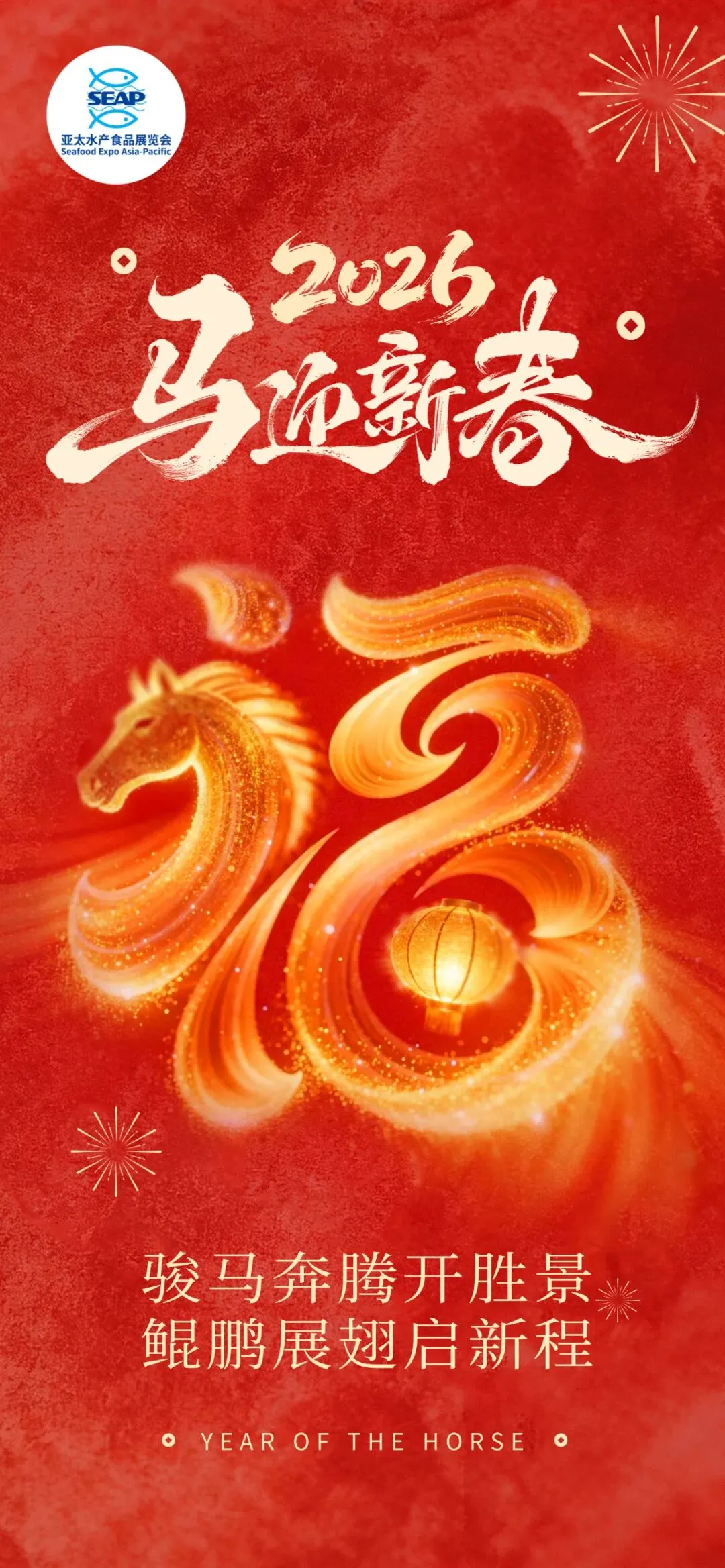 2026,亚太水产食品展览会将乘骐骥之势驰骋潮头,踏碧波万里奋楫前行。以热爱为鞍,御风破浪;以专业为蹄,笃行实干;以创新为缰,驰骋千里。