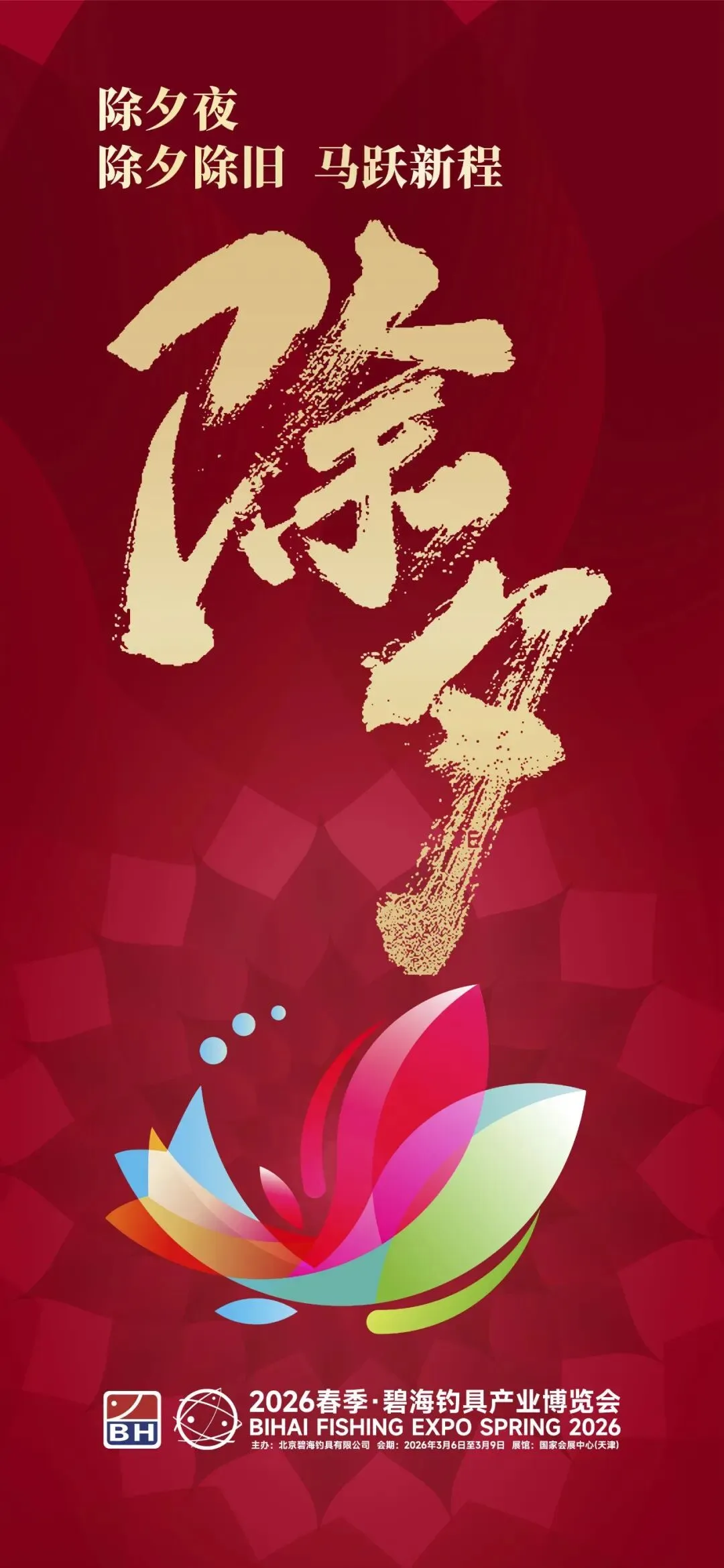 碧海钓具产业博览会致广大钓界同仁:除夕除旧,马跃新程;津门碧海,共迎春展!