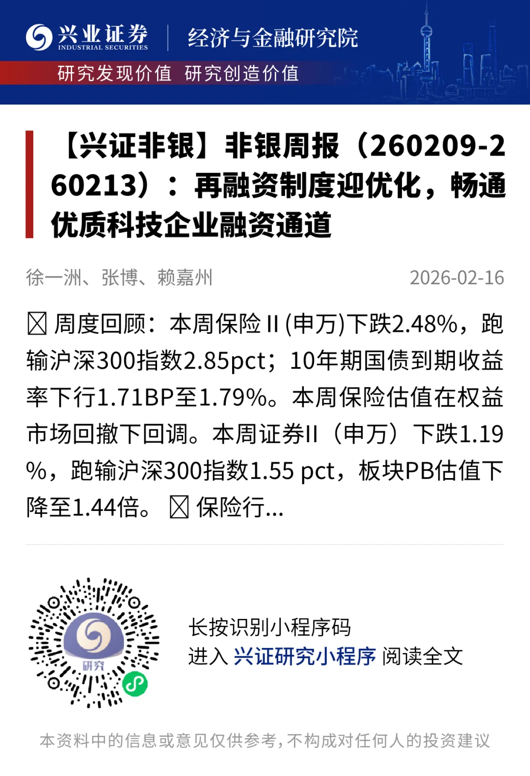 我们发布了《非银周报(260209-260213):再融资制度迎优化,畅通优质科技企业融资通道》,欢迎阅读!