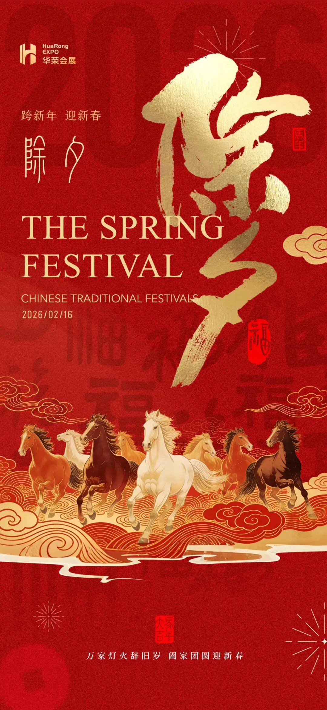 又是一年辞旧岁,今天是除夕,是阖家团圆的重要时刻,值此新春佳节之际,华荣会展祝大家平安过大年,健康永相伴。
