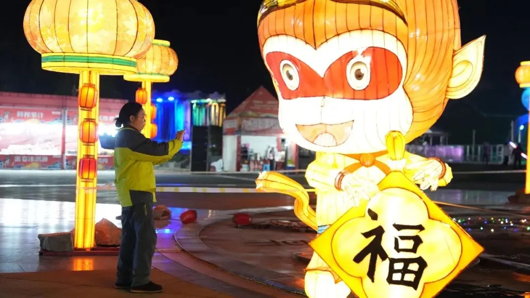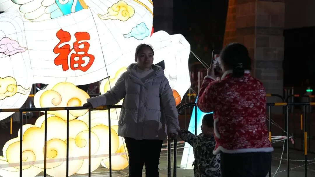 欢声笑语中,花灯映照着一张张笑脸,也点亮了人们对新年的美好期待。