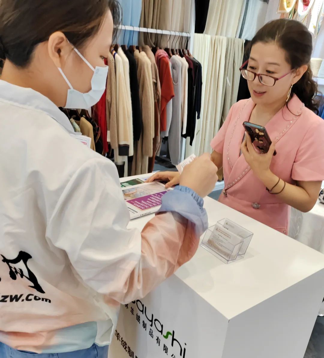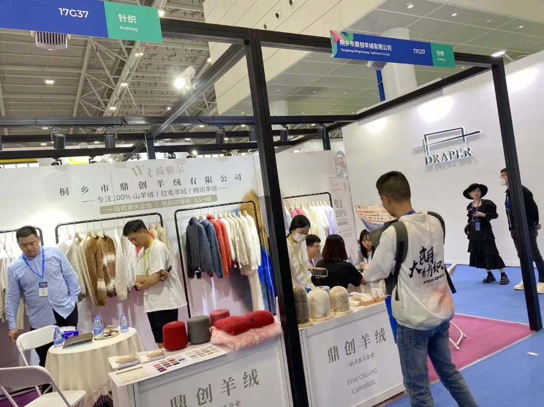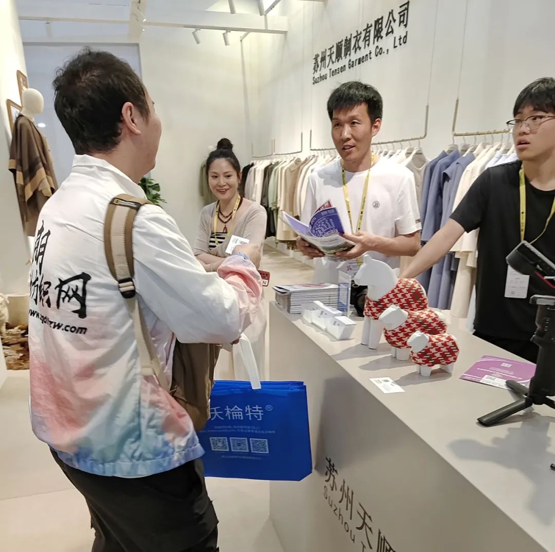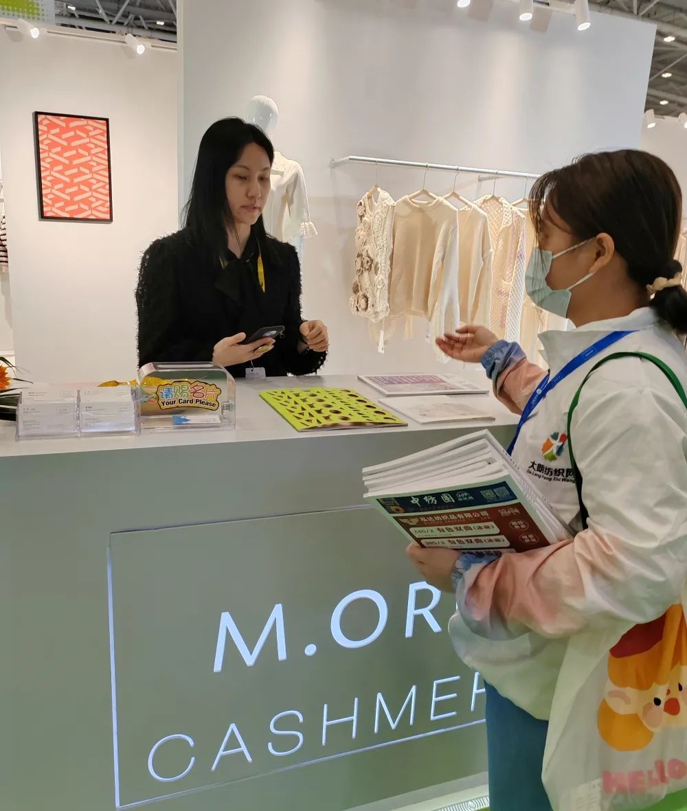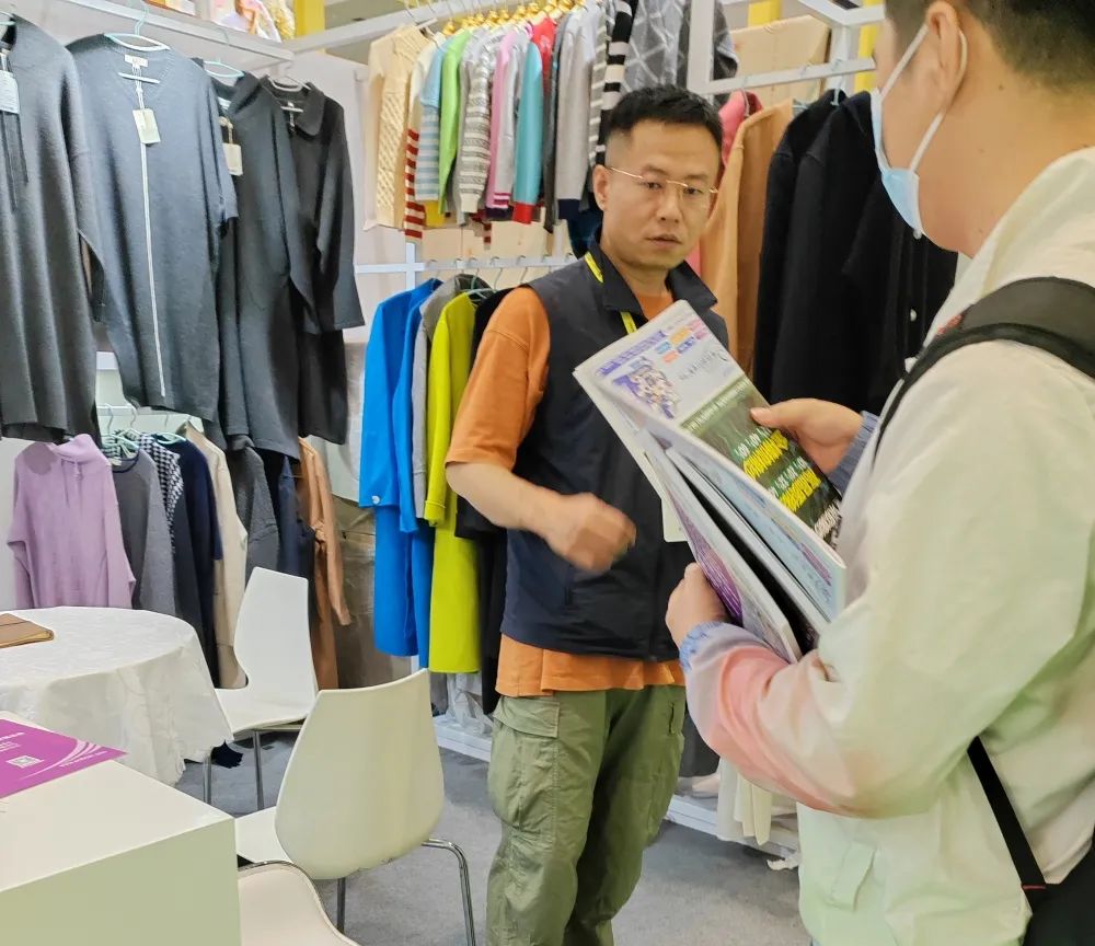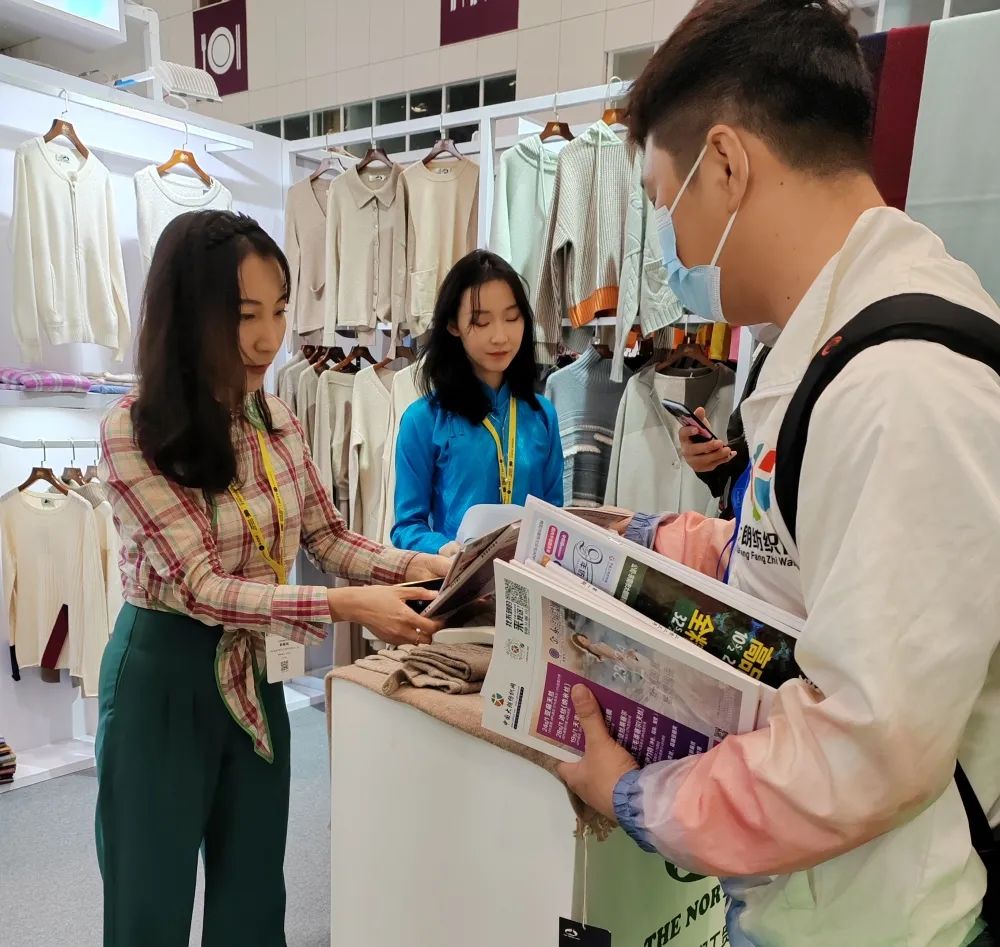 展会现场还是以成衣、布片、样纱、色卡展示,