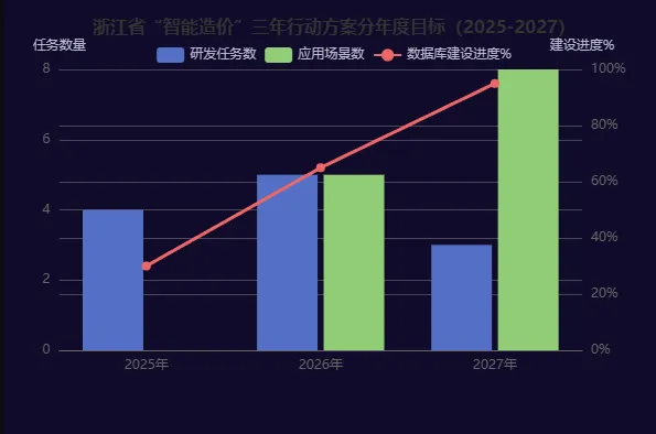 2025年12月,浙江省住房城乡建设厅正式印发《浙江省住房城乡建设领域“人工智能+”工作方案(2025-2027年)》,明确将“智能造价”作为12个重点应用场景之一。该方案构建了“建库、赋能、升维”的三部曲战略: