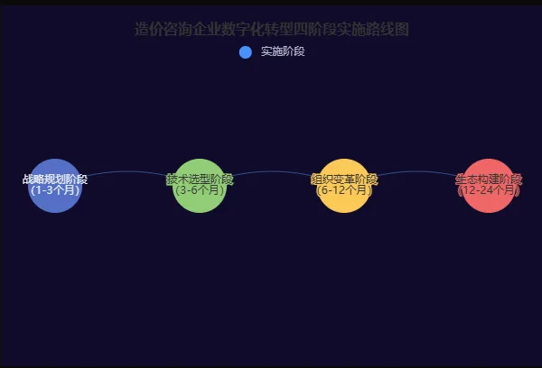 长期行动(24-36个月): 1. 构建企业智能化决策支持系统 2. 形成产业生态协同能力 3. 实现第二曲线收入占比超过30% 4. 成为区域乃至全国工程造价数字化转型标杆