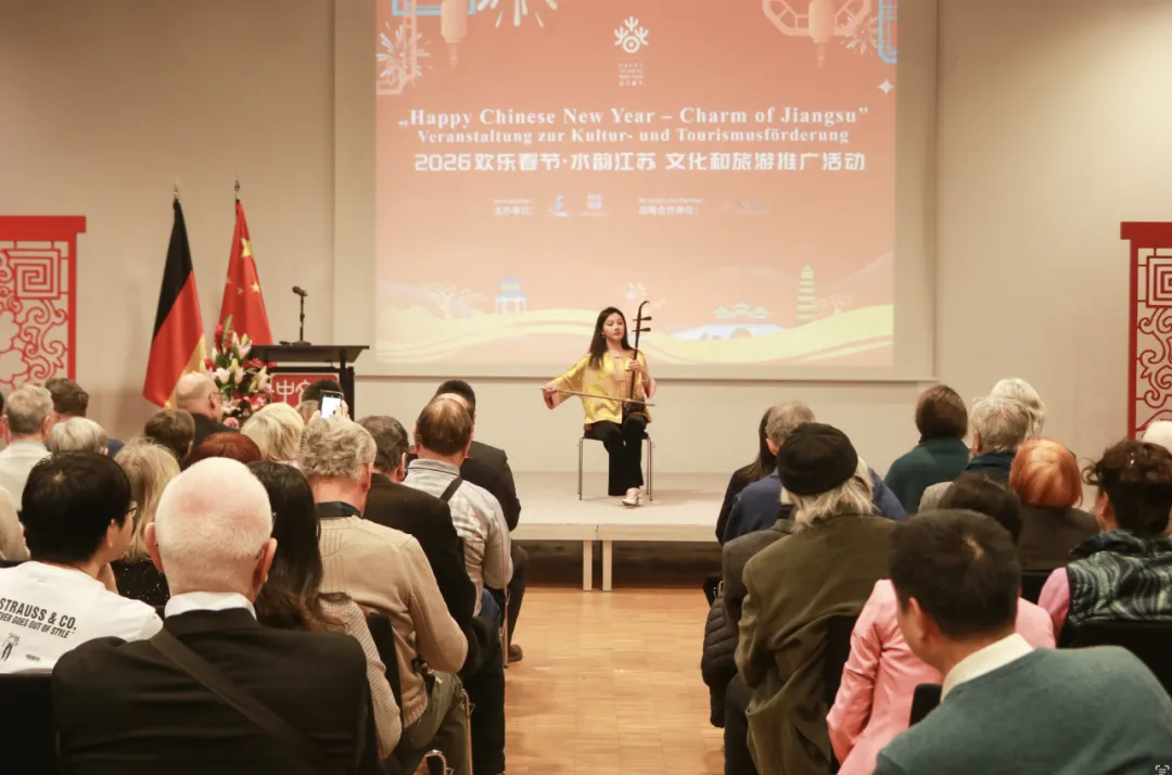 2月10日,“欢乐春节·水韵江苏”江苏文旅推介会在柏林中国文化中心举行。活动以江苏文化旅游资源推介为核心,融合艺术演出与现场交流,在节日氛围中呈现出一场内容充实、节奏紧凑的文化推广活动。
