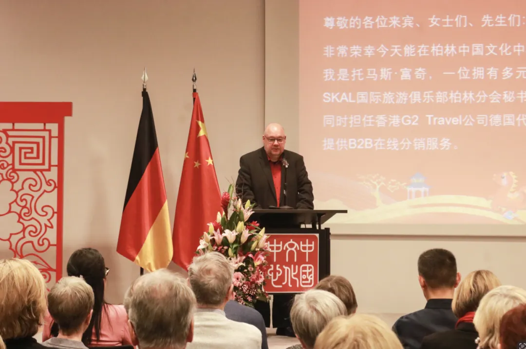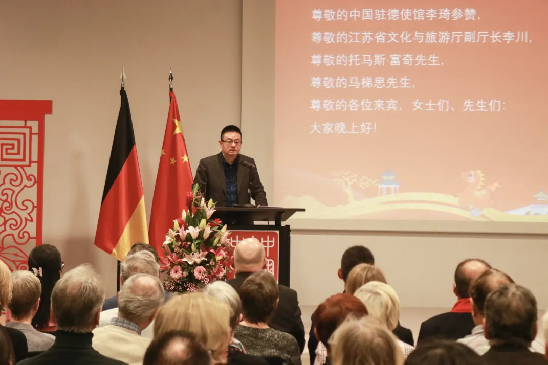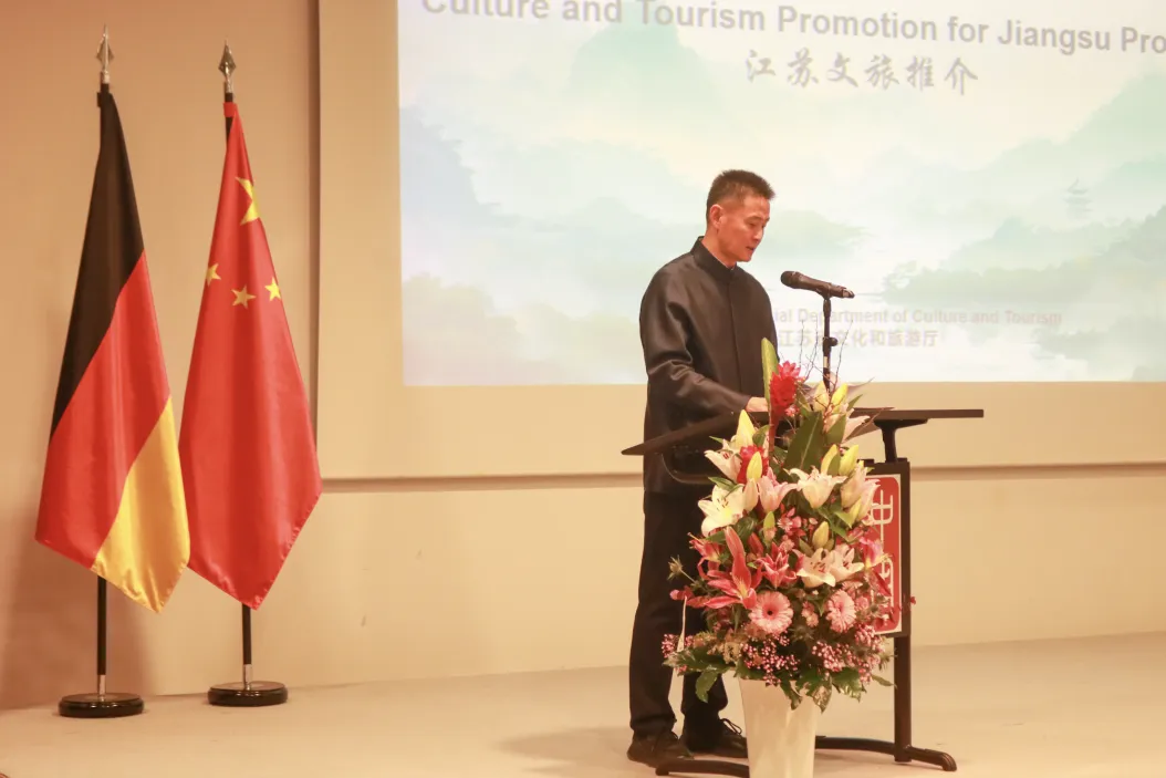 致辞环节中,中心负责人何主任首先对来宾表示欢迎,随后中国驻德国使馆文化处参赞李琦、江苏省文化和旅游厅副厅长李川等嘉宾分别致辞,对江苏文旅资源及中德文旅合作前景进行了介绍与展望。斯考尔旅游业主俱乐部柏林分部秘书长Thomas Furch先生及MM China Linke.K.创始人马梯思先生也结合自身经历,分享了跨文化交流与合作的实践感受,使活动不仅停留在推介层面,更成为一次真实而具体的交流对话。