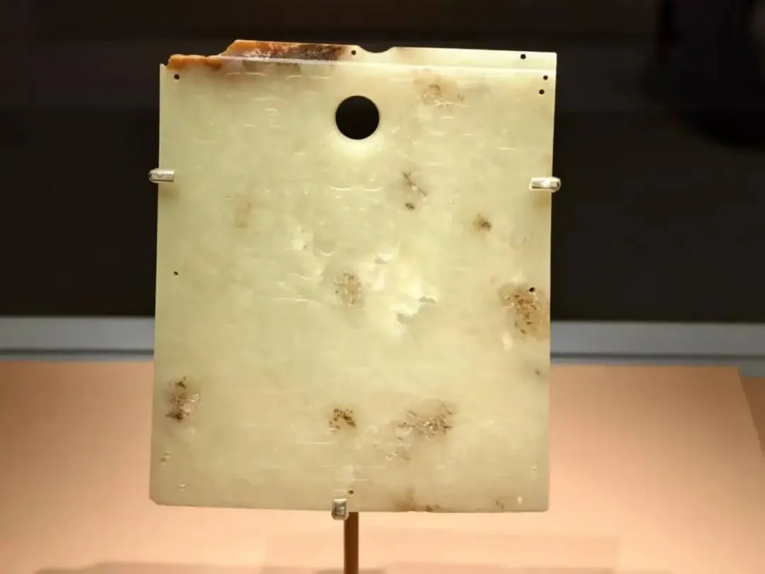 “展板上呈现的每个考古项目成果都是最新的,展出文物大多数是首展。”展览策展人、陕西历史博物馆副研究馆员张倩介绍,比如独立展柜中这件鹰纹玉钺,就是陕西石峁遗址皇城台最新出土的一件玉器,它上面雕有非常精美的纹饰,根据纹饰线图我们推测是鹰。这些深埋于黄土之下的城垣、宫室与礼器,不仅是文明起源的实物见证,更是中华民族共同体凝聚之初的历史印记。