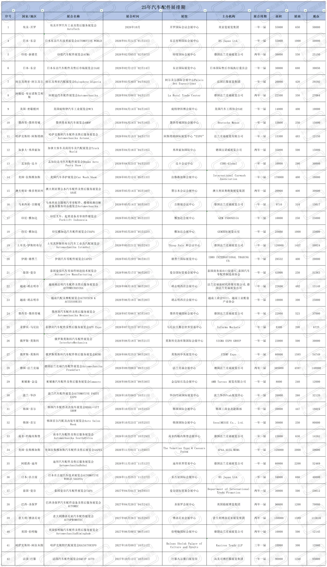 汽车配件展会排期表