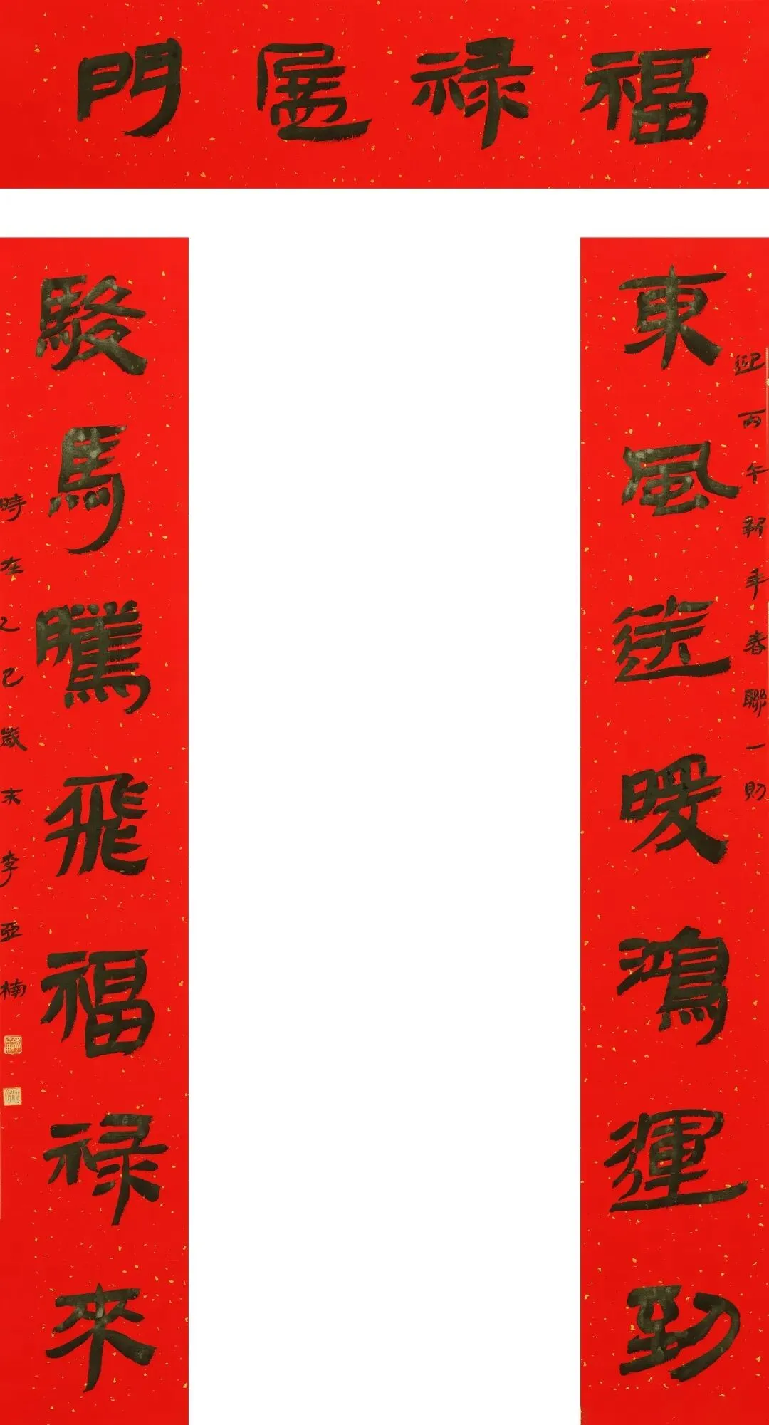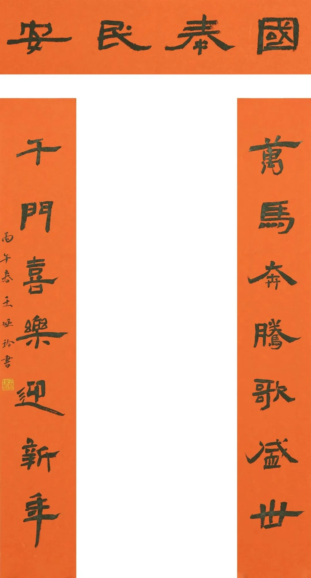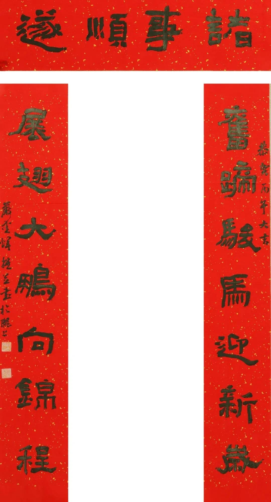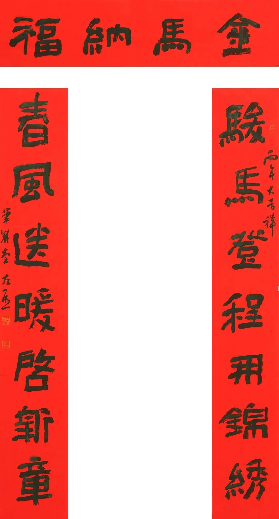 在此,我们谨以作品展播的形式,向全国各地书法家及爱好者致以最诚挚的敬意,向全国人民送上最热烈的新春祝福:愿马年春风得意,福运绵长;愿笔墨书香常伴,文化之花常开;愿大家都能在春联的祝福中开启顺遂新岁,在书法的雅韵中感受生活之美,共赴繁花似锦的新春之约!