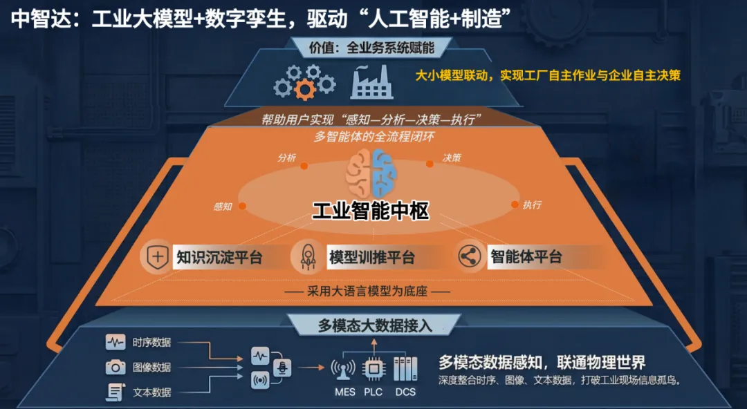 中智达推出工业机理引擎和工业垂域大模型,首创“机理+数据”双驱、大小模型联动的工业知识沉淀平台和工业智能体平台,帮助用户实现“感知—分析—决策—执行”多智能体的全流程闭环,实现从“精准问答”、“辅助监视”向“自主决策”、“自主作业”的新跨越。