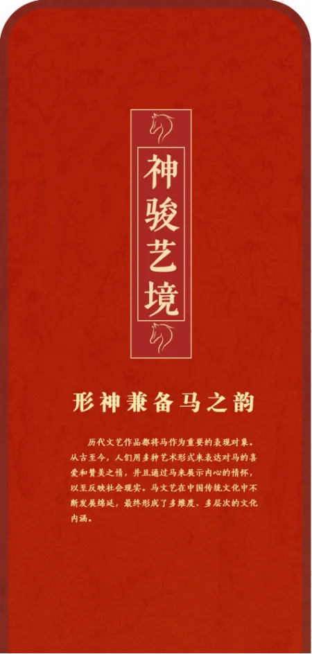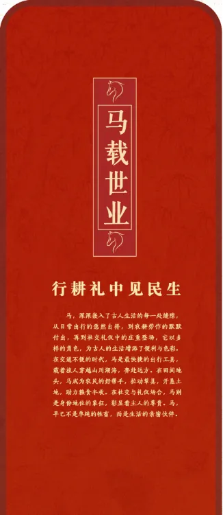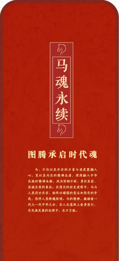 《易经・说卦传》中提到“乾为天,为圆,为君,为父,为玉,为金,为寒,为冰,为大赤,为良马,为老马,为瘠马,为驳马,为木果”。马是“乾”卦的化身,代表至阳至刚、自强不息。马始终与国家的强盛、文明的交流与英雄的功业紧密相连。它不仅是武力与速度的体现,更承载了民族对开拓、进取和卓越的不懈追求,成为贯穿华夏文脉的精神符号。