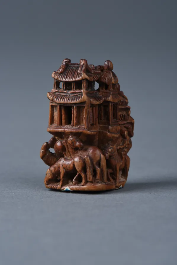清木雕楼阁八骏摆件 济南市博物馆藏