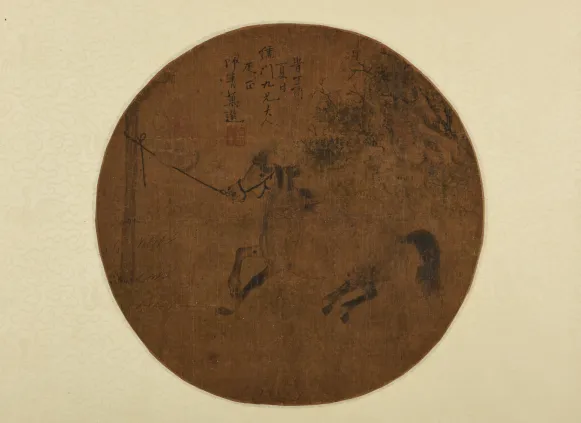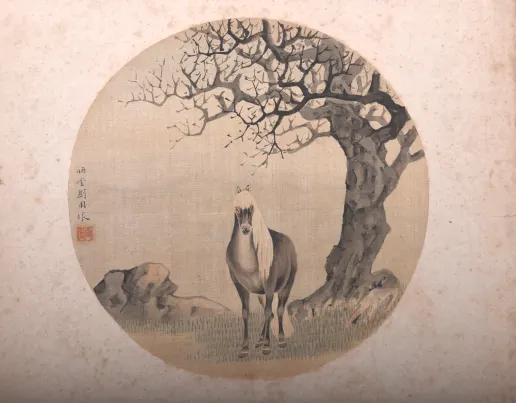 清末刘用烺(lǎng)立马图团扇面 济南市博物馆藏