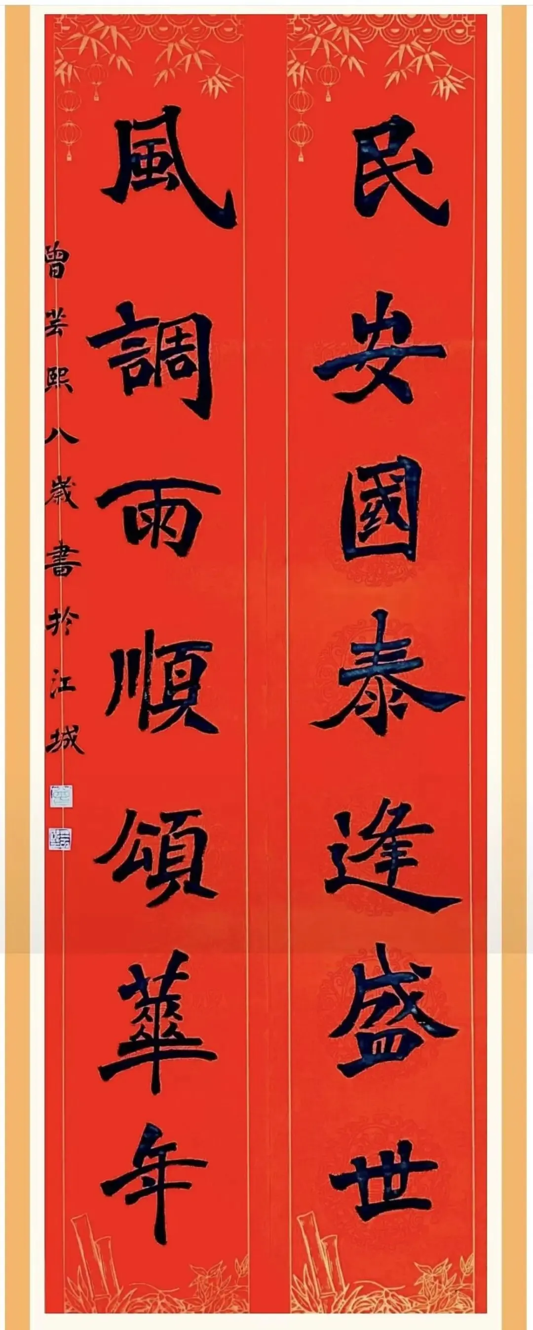 ▲曾芸熙,8岁,《对联一幅》,软笔书法