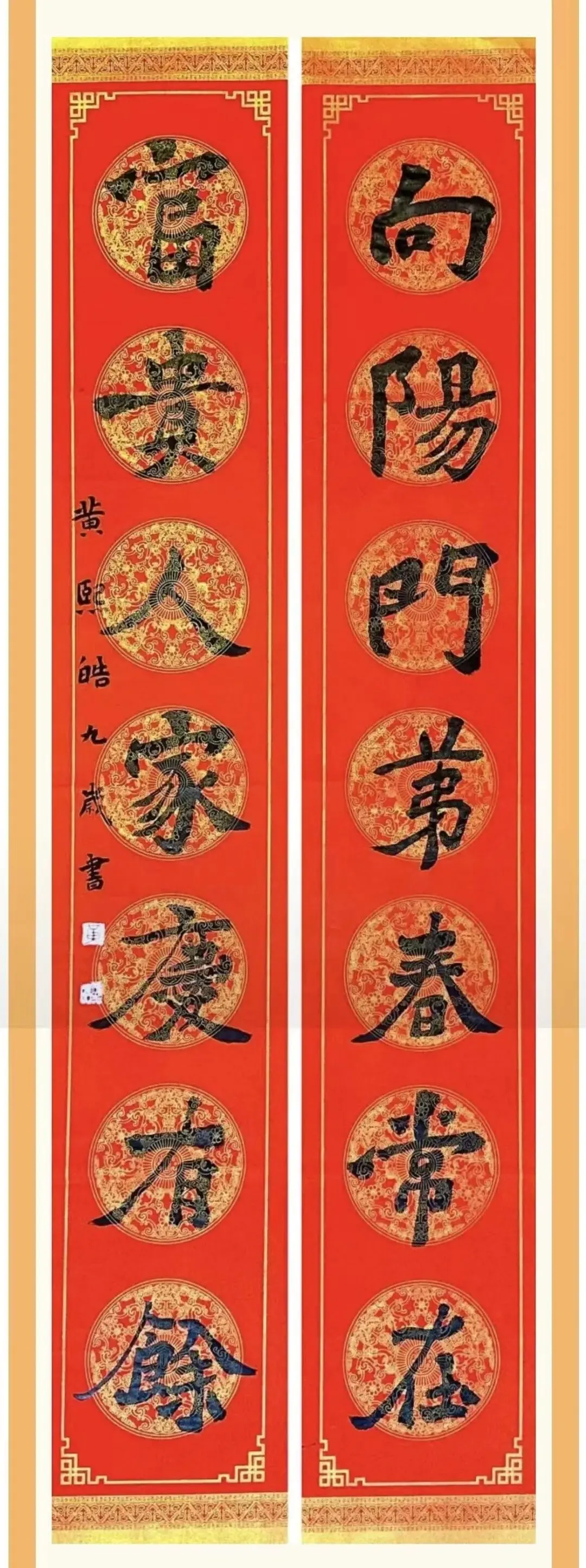 ▲黄熙皓,九岁,《对联一幅》,软笔书法