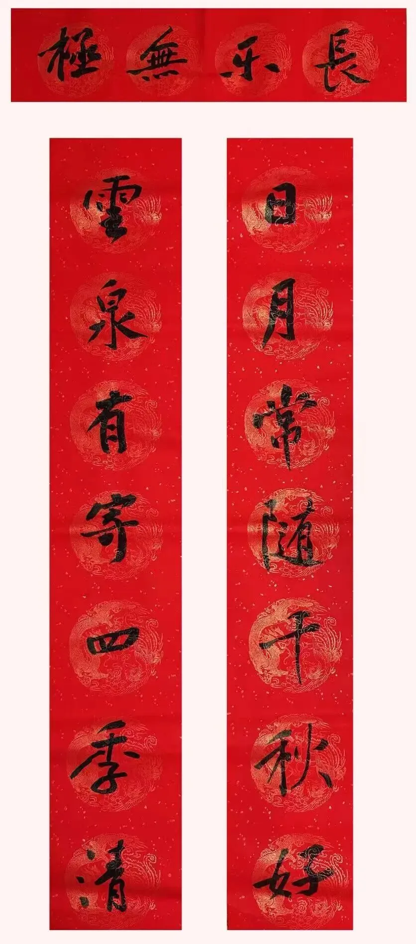 ▲杨欣瑶,14岁,《长乐无极对联》,软笔书法