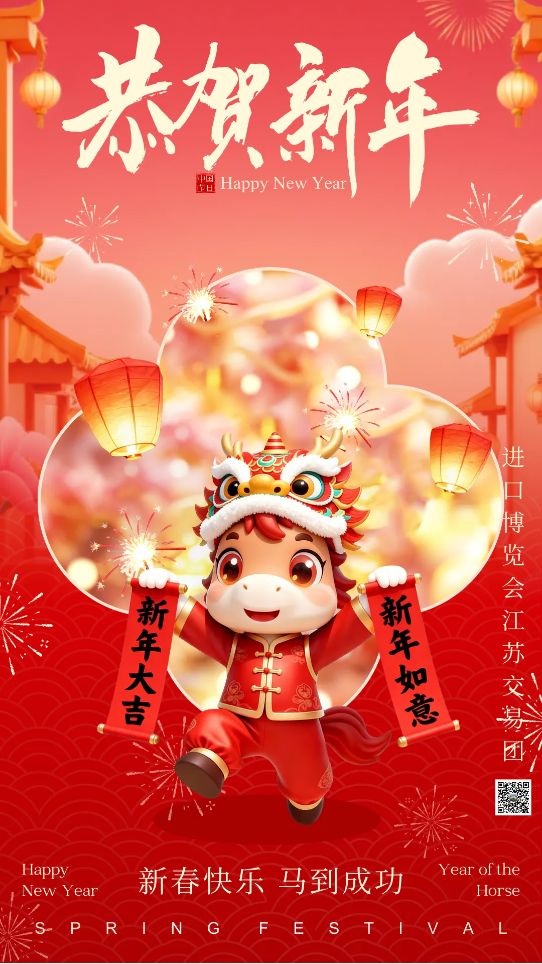 进口博览会江苏交易团祝您春节快乐,马年大吉